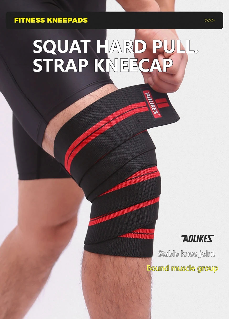 AOLIKES 1PCS Knee Wraps for Weightlifting - 78.7" Elastic Knee Straps for Squats and Weight Lifting - Lifting Knee Wraps for Strength & Compression Wrap - Knee Support for Squatting, Powerlifting, Gym