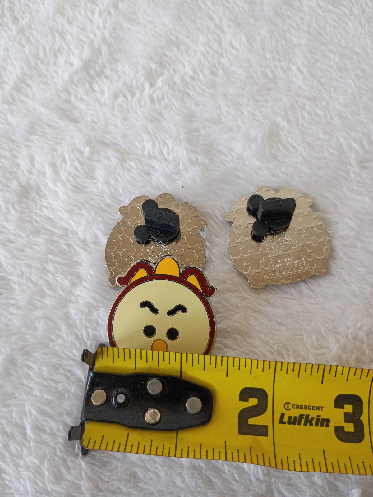 Cogsworth is a character from Disney's Beauty and the Beast and this is a pin from the Disney Tsum Tsum Mystery Collection. This pin is part of a series that also includes other characters from the movie like Belle, the Beast, Mrs. Potts, and Lumiere. The pins were released in a mystery box with two random pins from the set. In good condition see pictures for more details